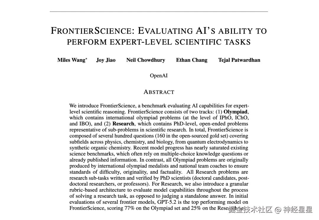 FrontierScience 数据集,实现「推理+科研」双行