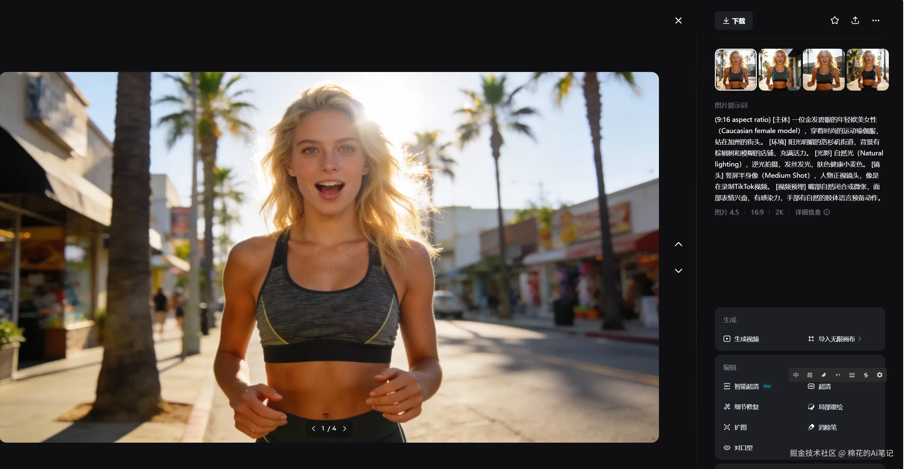 使用即梦AI生图功能,生成一张符合欧美审美的模特产品图。