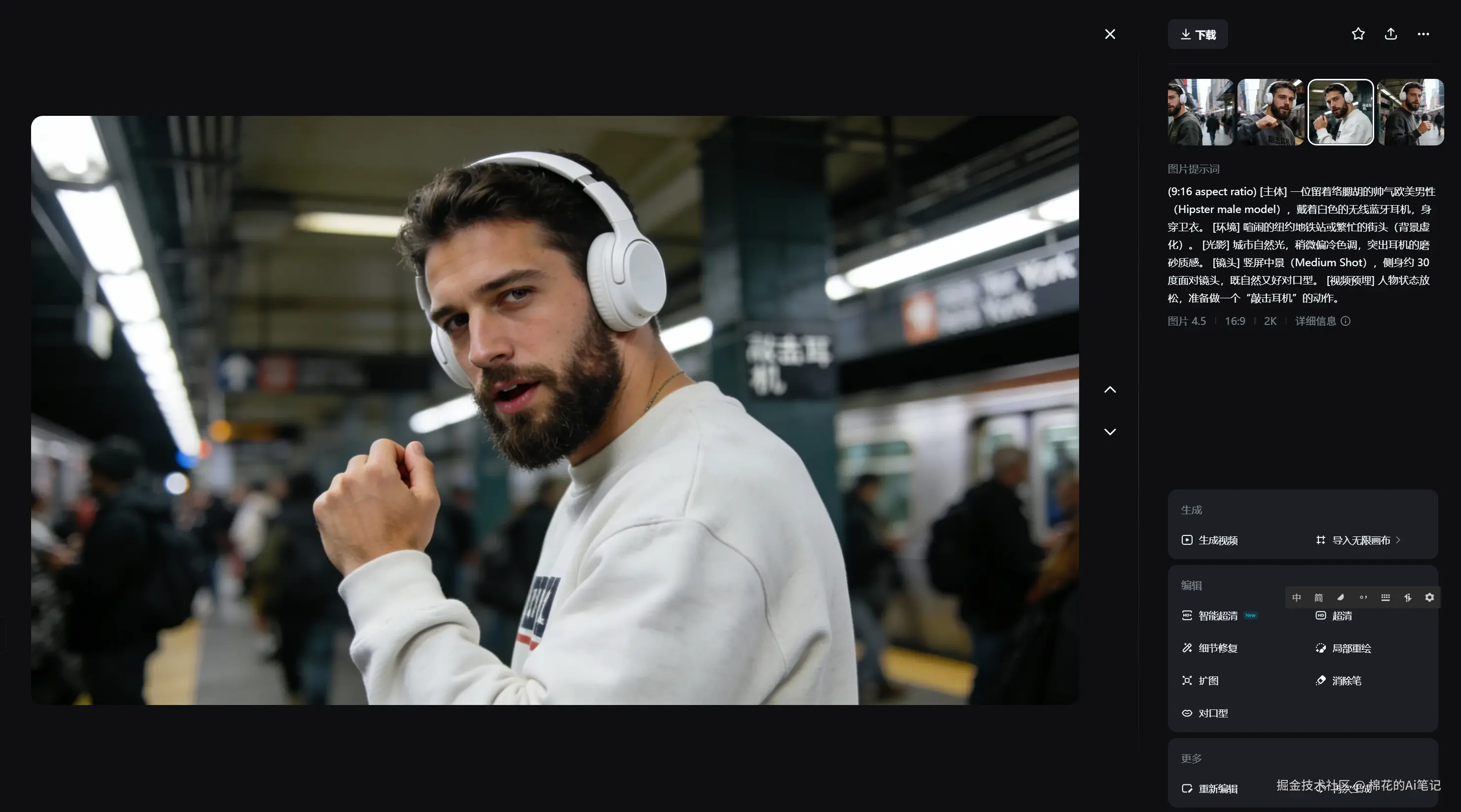 - 图生视频双王牌:叠加已有的顶级生图模型,它形成了“生图 + 生视频”的双重优势。这意味着我们可以先用生图功能严格控制产品光影和构图,再将其转化为视频,确保商业交付所需的稳定性。