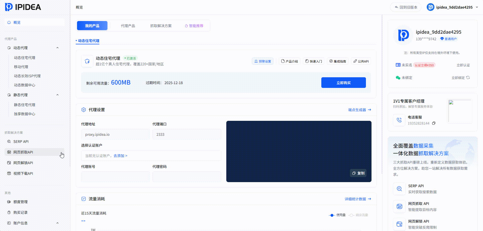选型建议应基于项目的核心诉求:追求极致性能与稳定性可考虑IPIDEA;重视数据地理准确性及长期投入产出比可选择Bright Data;若预算为核心条件,则可评估Smartproxy。在实际部署前,建议在目标网站进行小范围真实环境测试。选好合适的动态代理IP后,我们来实战,看一下获取效果: