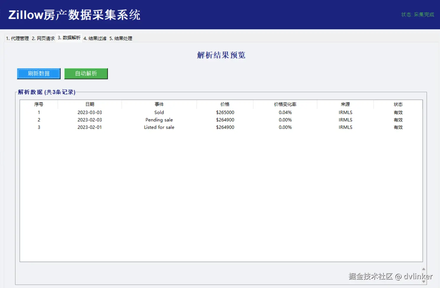 测评目标:在相同时间内,持续获取100个不同的Zillow房产详情页中的价格历史数据,统计各项指标。