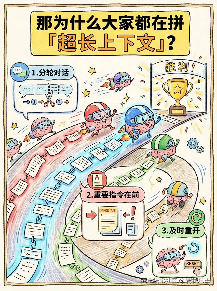 当上下文非常长时,模型并不是“所有信息都记得一样清楚”,而是在注意力里不断做取舍。这样做的结果就是早期指令被稀释,关键约束被忽略,回答开始跑偏、重复、敷衍。它不是忘了,而是顾不过来了。