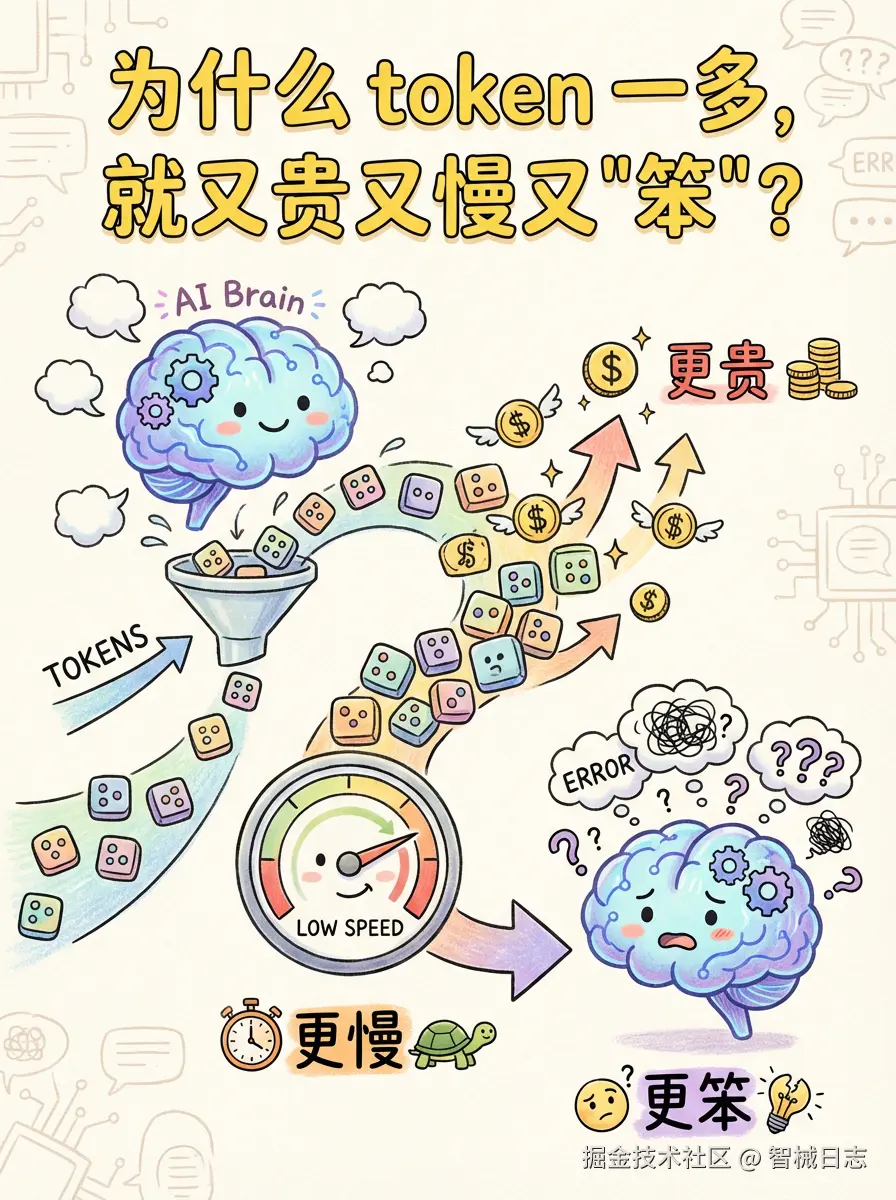 因为每多一个 token,后续生成的每一步,都要把它重新纳入计算。这可不是一次性成本,而是被反复支付的成本。