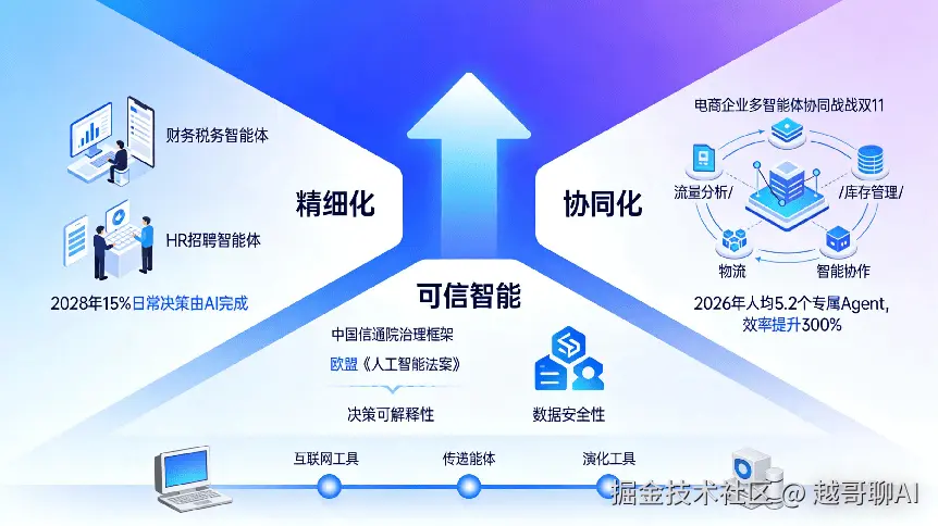 看到这里,相信你已经对国内的Agent智能体有了全面的了解。但智能体的发展才刚刚开始,根据行业报告和技术趋势,它的下一站将朝着“更精细、更协同、更可信”的方向进化。