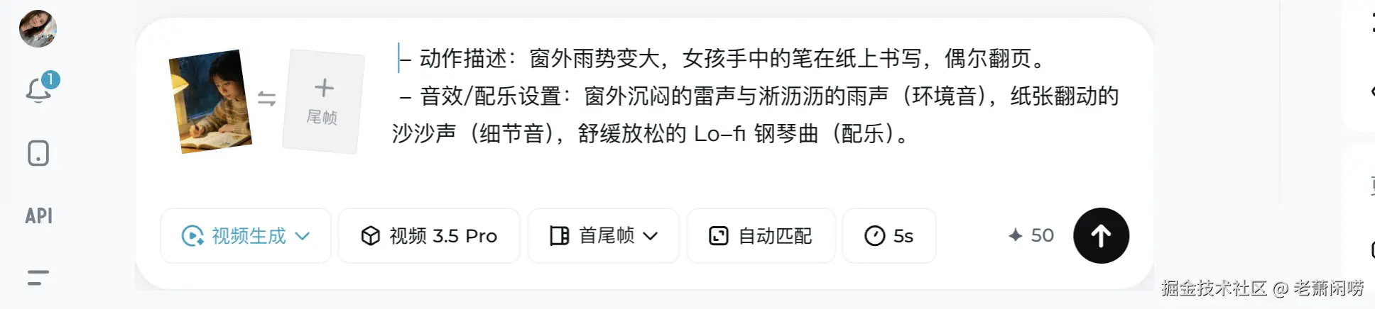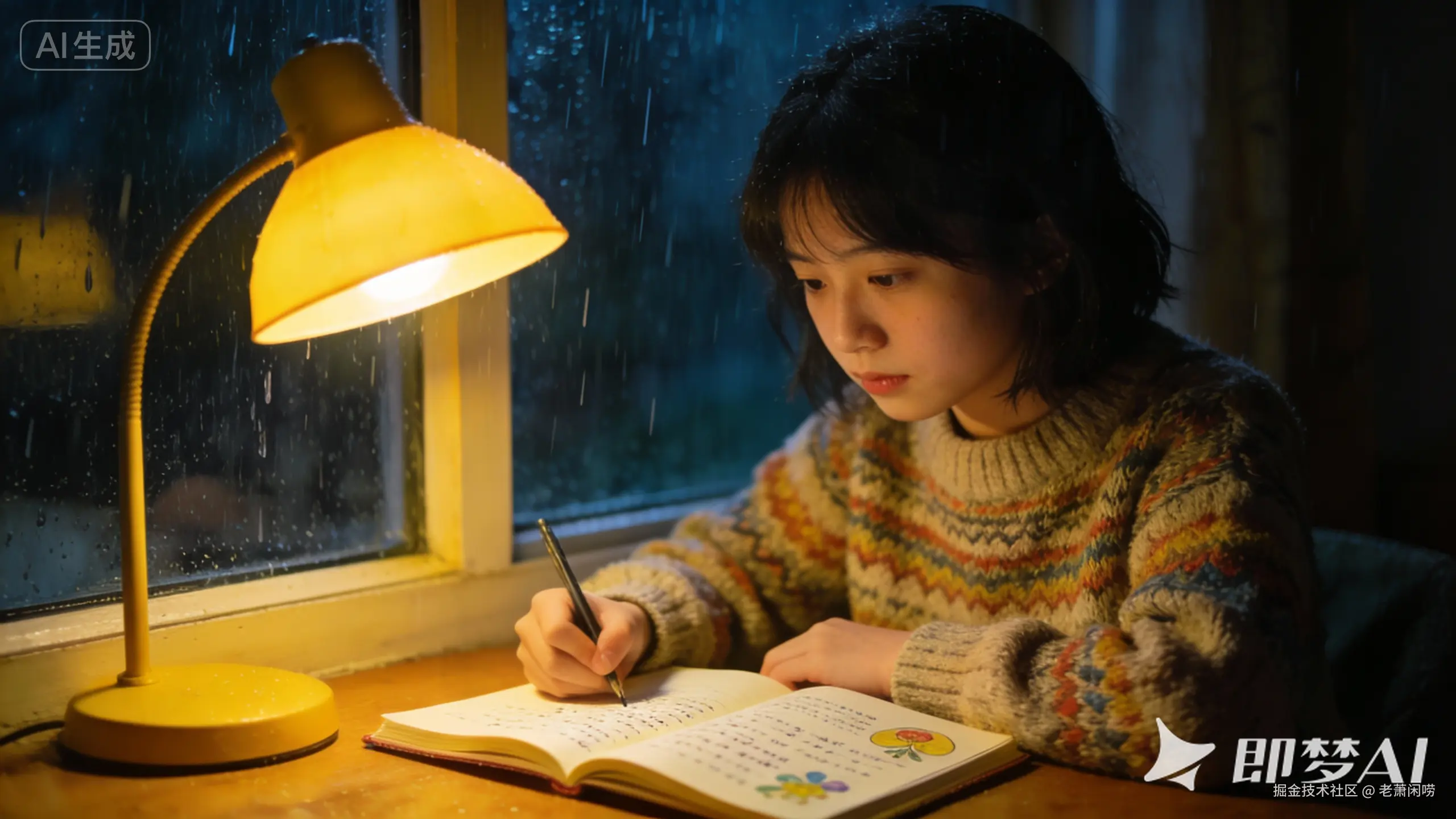 - 听觉盛宴:视频生成的瞬间,我听到了那种极其解压的白噪音,雨声有远近层次,翻书声清脆悦耳,BGM 完美卡在情绪点上。不用剪辑,直接就是一条高质量的 ASMR 视频。