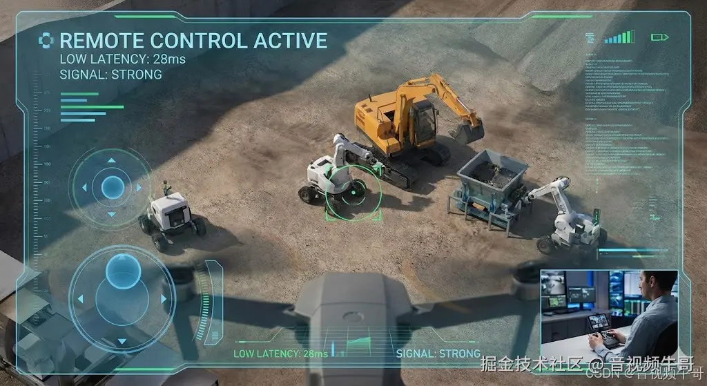 在远程操控里,3 秒等于事故:挖掘机一铲下去,画面还停留在三秒前,你控制的不是机器,而是“历史回放”。