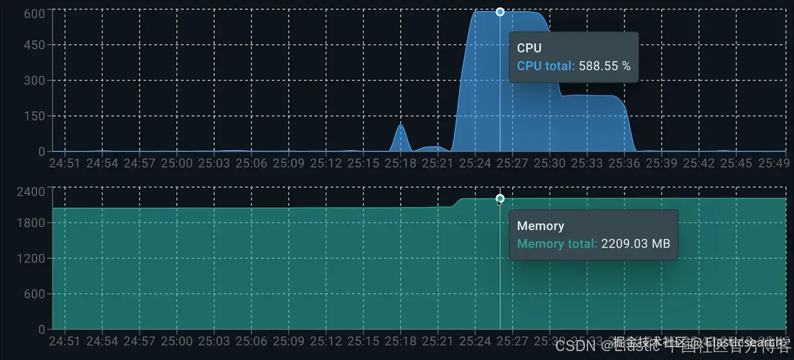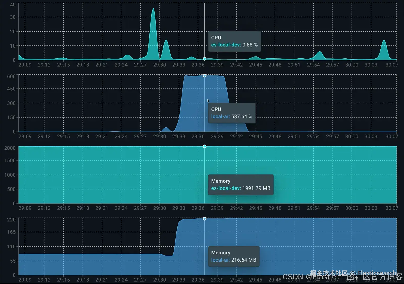 使用 Docker Live Charts 扩展,我们可以看到两个容器在生成响应时的资源消耗: