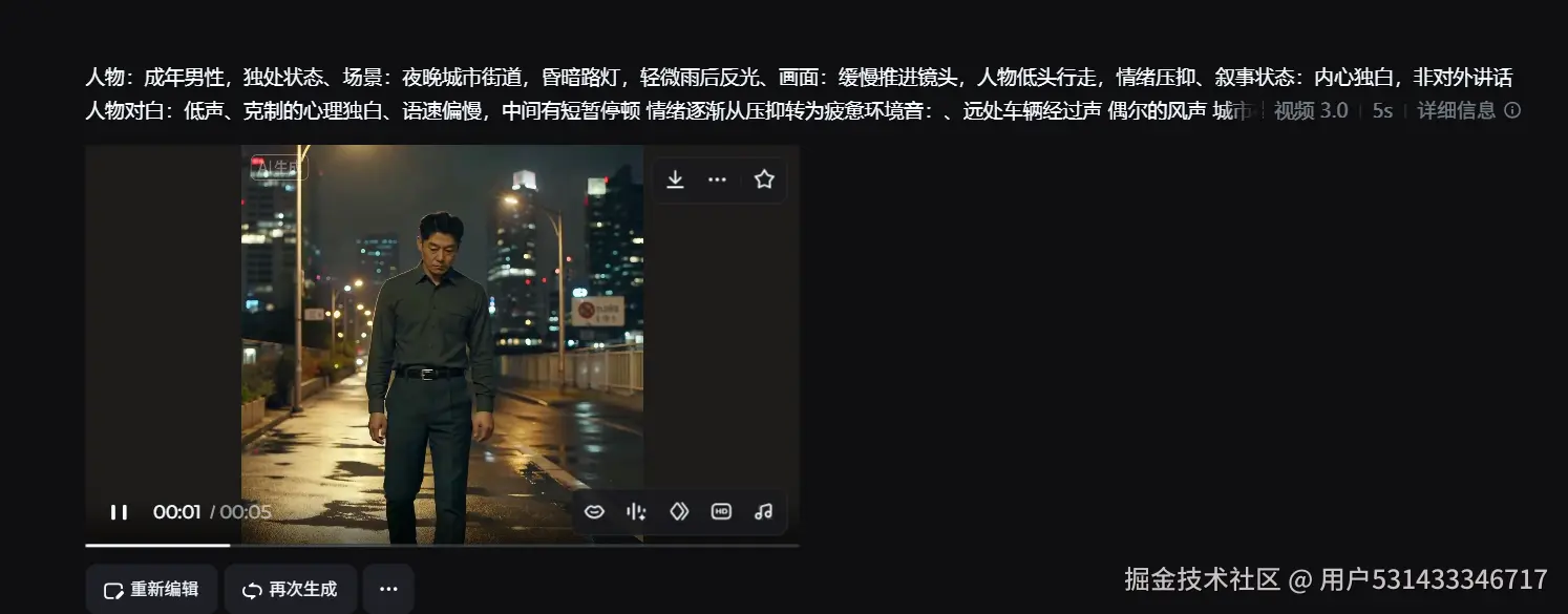 画面 + 环境音 + 人声对白 + 音乐,是一起生成的,真正实现音画一体。 下面这 3 个案例,就是我从失败到成功的实测过程: