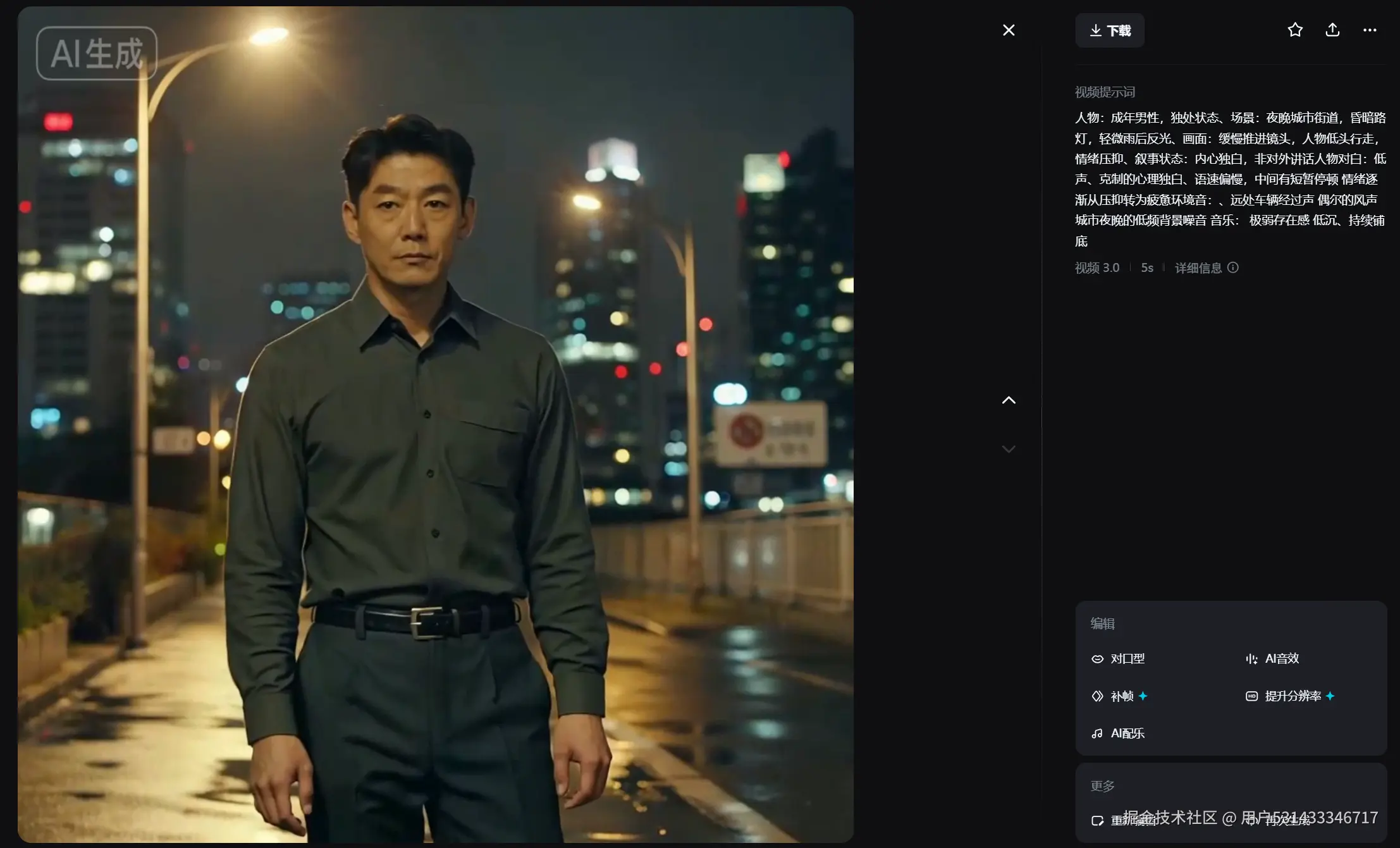 这也是我第一次觉得,这条 AI 剧情短片不再像“哑片 + 解说”, 而是真的开始接近“电影语言”。