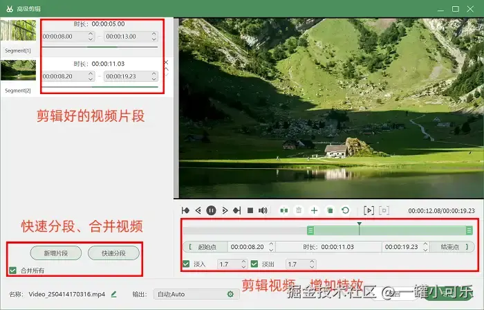 第三步:录制完成后,若需要对视频做后期处理,可点击 【高级剪辑】 按钮。在该页面中,用户能够直接对视频进行分段裁剪或添加特效,无需再将视频导入其他剪辑软件,操作更便捷。