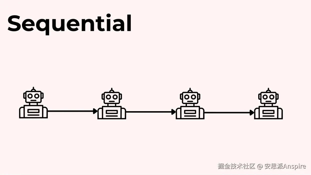 这是最简单且最可预测的方式。每个代理完成其工作后,将输出传递给队列中的下一个代理。