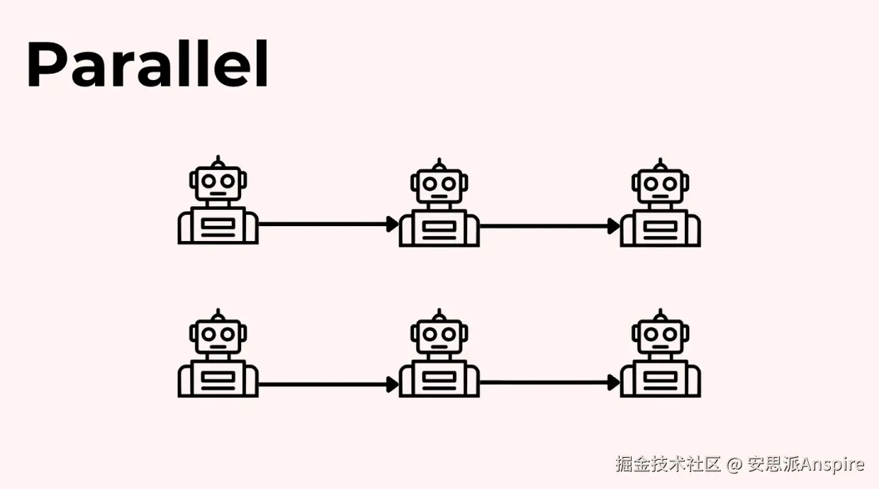 但顺序执行并非唯一选择。当步骤之间相互独立时,你还可以并行运行代理,这对于减少延迟非常有效。