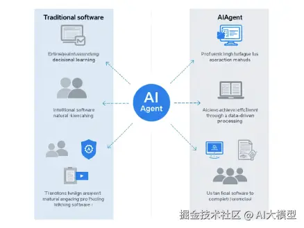 图 | AI Agent与传统软件对比示意图