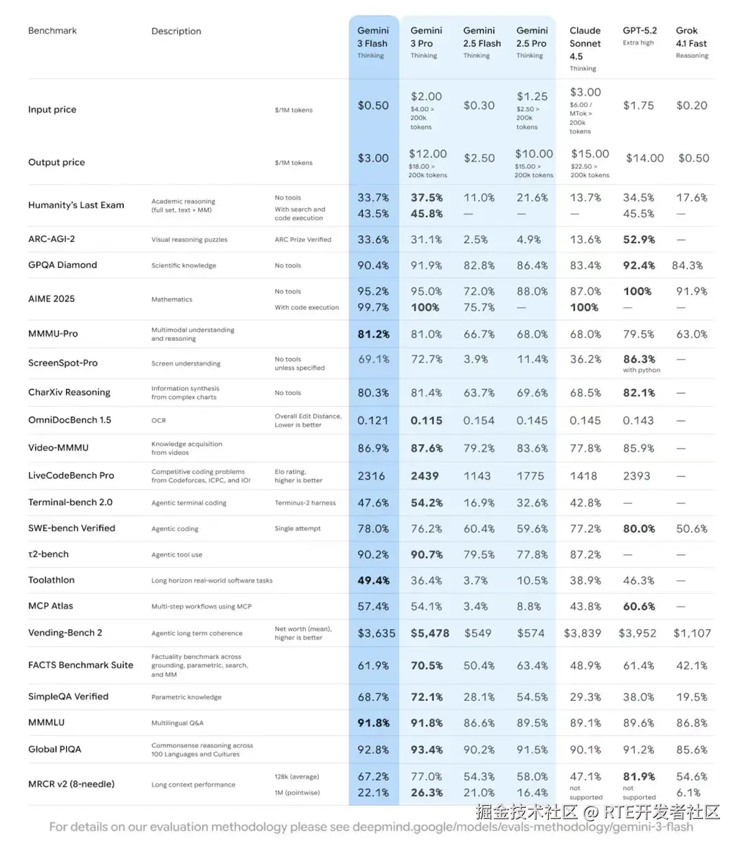 数据显示,Gemini 3 Flash 的 Token 消耗比 2.5 Pro 少了三成,速度快三倍,价格更是压到了输入 0.5 美元/百万 Token,输出 3 美元/百万 Token 的地板价。