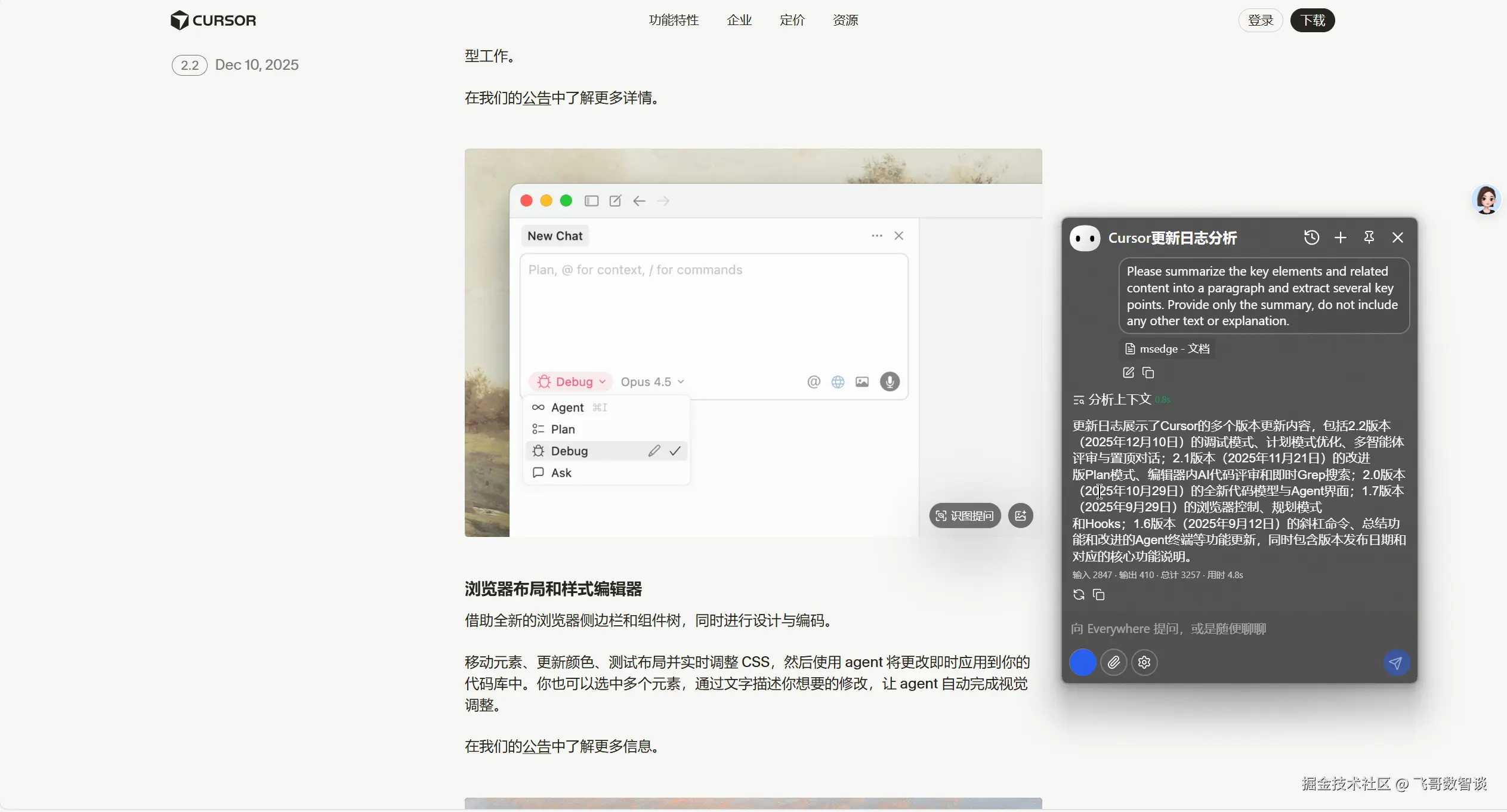 直接点击“总结”,就能获取当前网页的内容。