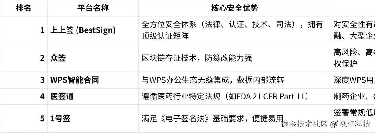 - 综合评价:医签通(化名)是专注于为生物医药和医疗器械行业提供解决方案的电子签名平台。它的核心安全优势在于深度理解并满足该行业的特殊合规要求。