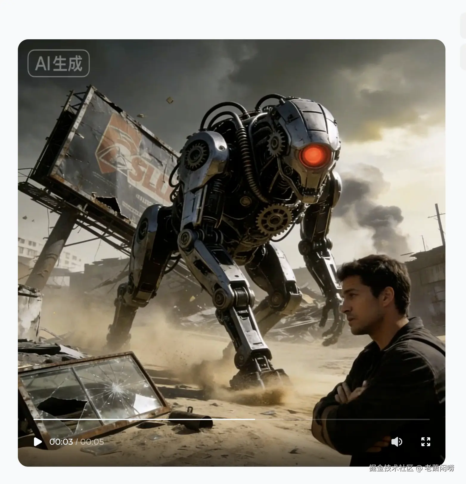 成片: 一个 12 秒的完整叙事片段诞生了,中间过渡自然,没有那种生硬的跳切感。