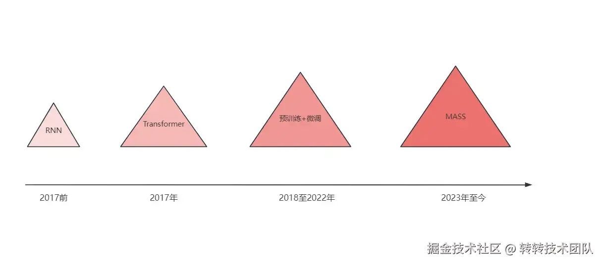 - 2023年至今可以看成MASS(模型作为一种服务)时代,也就是模型作为一种服务提供商业价值,业内从追求规模转向创造价值,模型服务也可以创造价值,并构建应用生态,用户更注重如何 "用好模型"