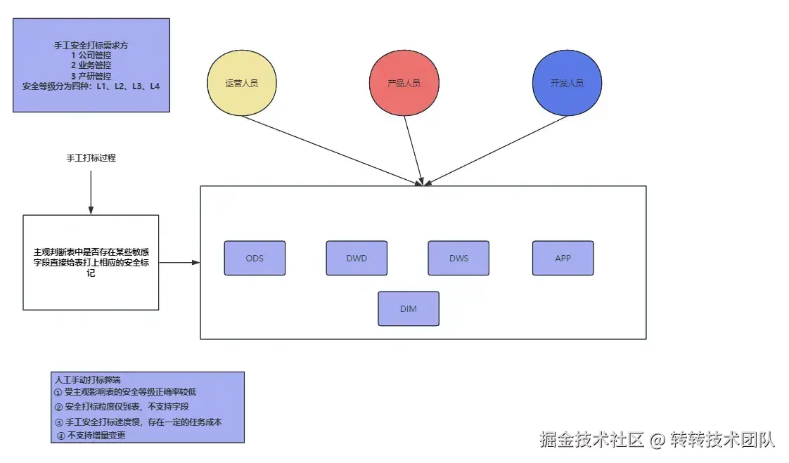 安全打标也是数据治理的一个环节,为了满足安全管控,合规使用,权限隔离需要对每一张表和字段合理打上标记,它也是属于数据治理两大体系中的分析体系治理中的一个重要环节。