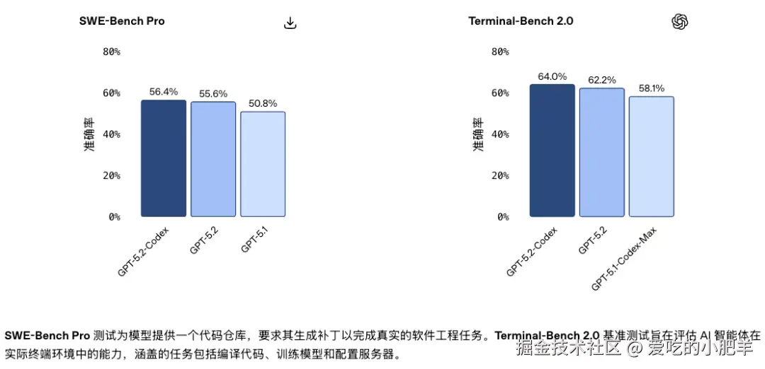 GPT-5.2-Codex在SWE-Bench Pro(业界公认的代码理解和生成标准)上的准确率达到56.4%,这比上一代足足提升了15个百分点。