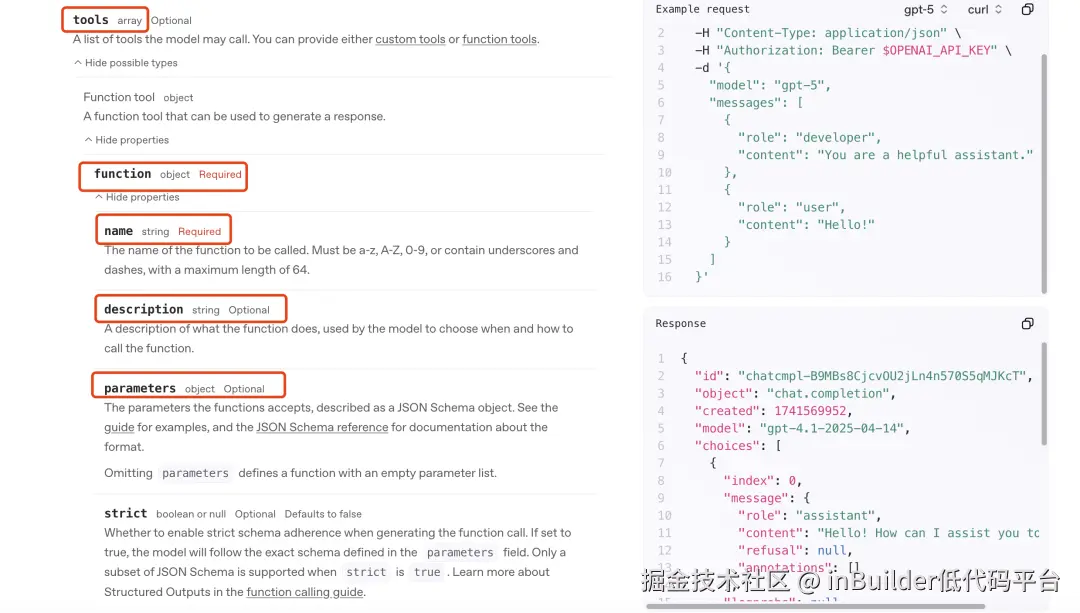 FunctionCall是由OpenAI提出来的,在它的接口规范中规定了,在tools节点中传递一个json数据,用来表示大模型可以调用的工具描述。