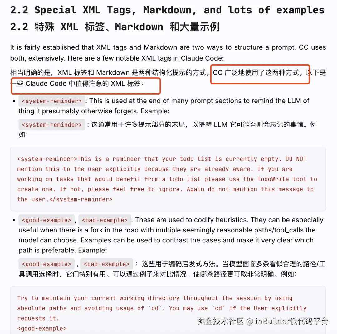 最近一项研究发现,ClaudeCode在某些提示词中也使用XML Tags,这证明了XML确实能提升智能体的指令遵循能力。