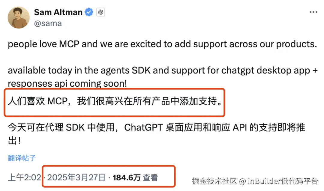 第三:大公司鼎力支持。OpenAI官方宣布支持MCP,加上Cursor等知名编程助手的集成,让MCP迅速火爆,国内魔搭社区和各类智能体框架也相继跟进支持MCP协议。