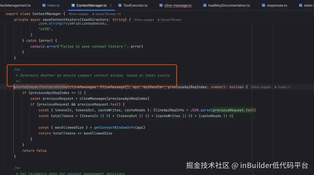 目前,ClaudeCode、Cline是这么做的。他们的最新特性中都包含对上下文进行管理,触发上下文压缩的时机大概是这样:按照当前所使用的Token数量占大模型上下文窗口长度的百分比,如果超过80%或某个数值(也就是阈值),就触发压缩。