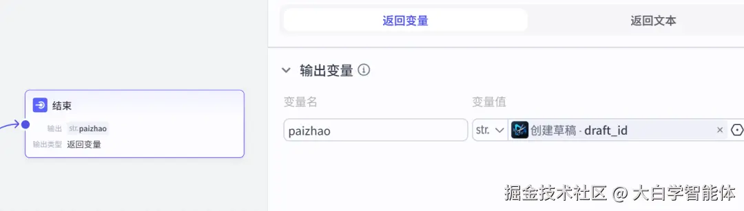 结束节点返回草稿id。将生成后的草稿id复制到电脑端的剪映小助手工具,点击创建剪映草稿。