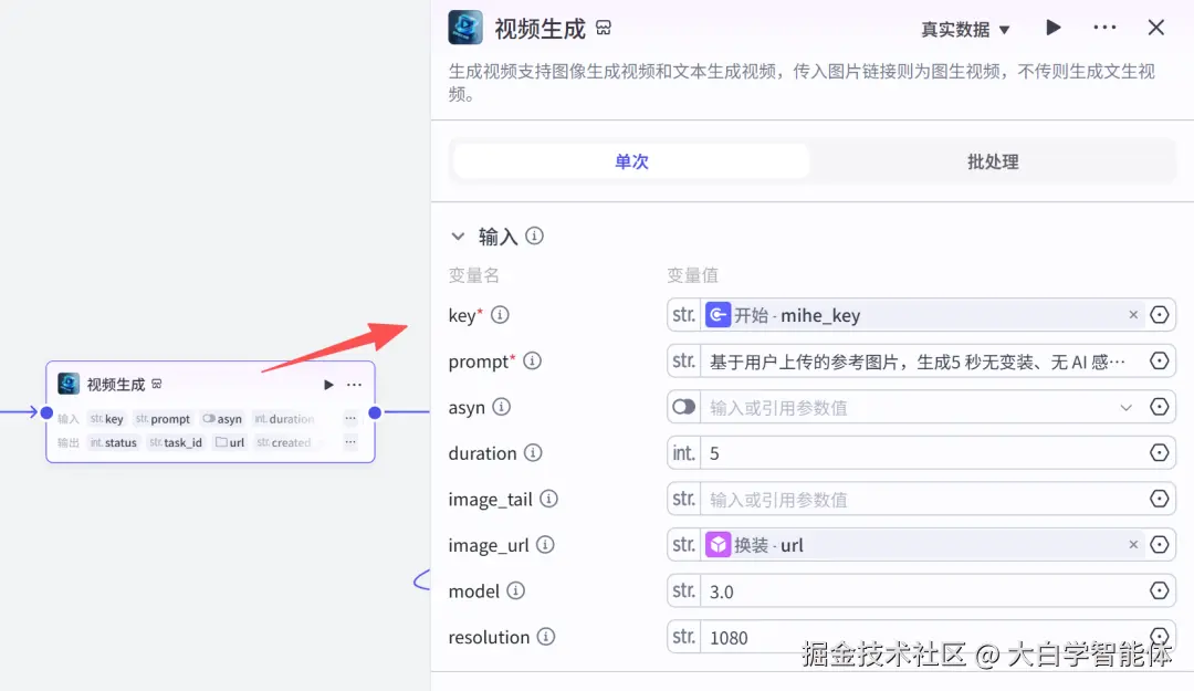 【即梦视频生成】插件根据提示词和换装图片生成视频。这里视频提示词已经固定,想要不同风格视频,可以自己加大模型,或者修改提示词。修改提示词可以用豆包或者DEEPSEEK。