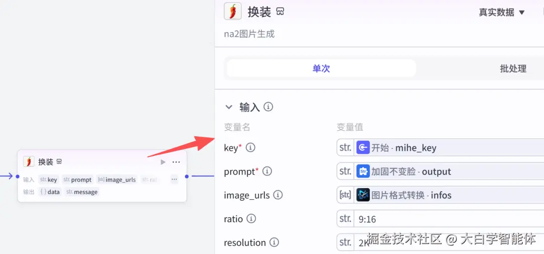 使用【剪映小助手】的str_to_list方法,把参考图从image类型变成字符串列表,方便后面节点使用。4.3 生成换装图片