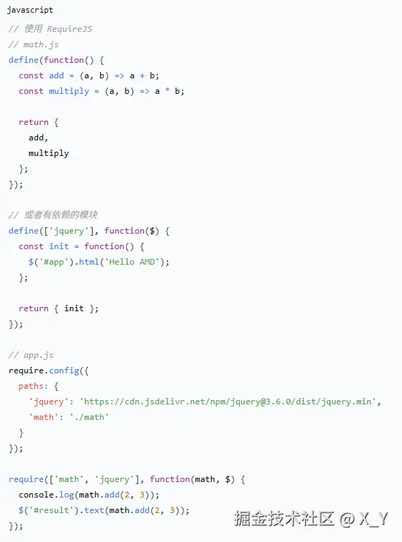 特点:异步加载、依赖前置,提前声明依赖、专为浏览器环境设计