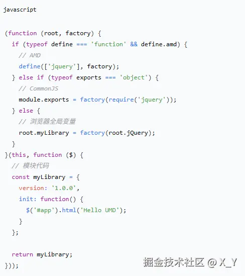 3.UMD ,通用,兼容 CommonJS、AMD 和全局变量模式。代码复杂,适合开发库