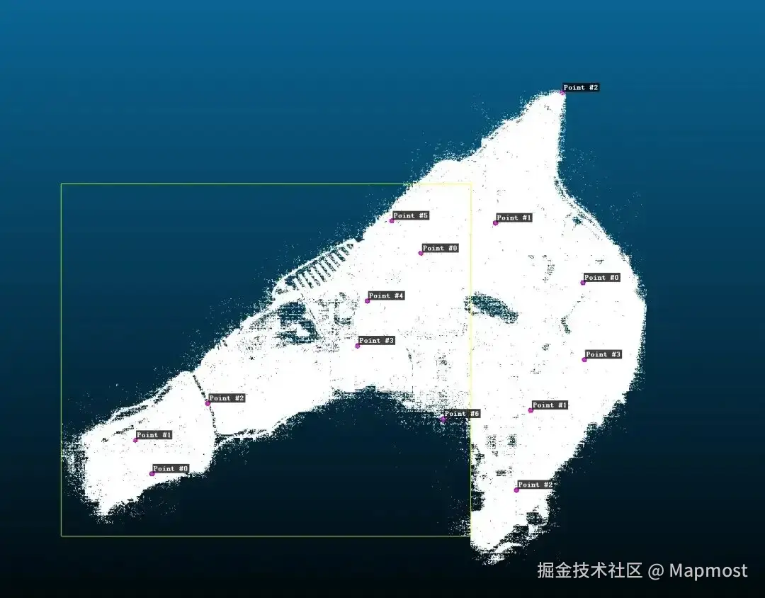 模型侧则首先要将colmap结果点云导入进CloudCompare之类的点云处理工具,然后选取与地图上选择的相同的点,记录其坐标,即模型坐标系下坐标。