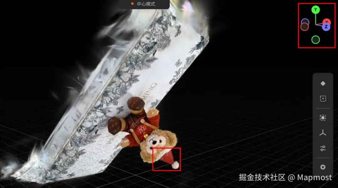 首先我们一般可以看到,查看器右上角有个很明显的XYZ轴。我们刚进入查看器后什么都别动,XYZ这个初始的方向就是世界坐标系的指向,我们只需要关心指向上方的是哪根轴就行。这个场景中就是Y轴。