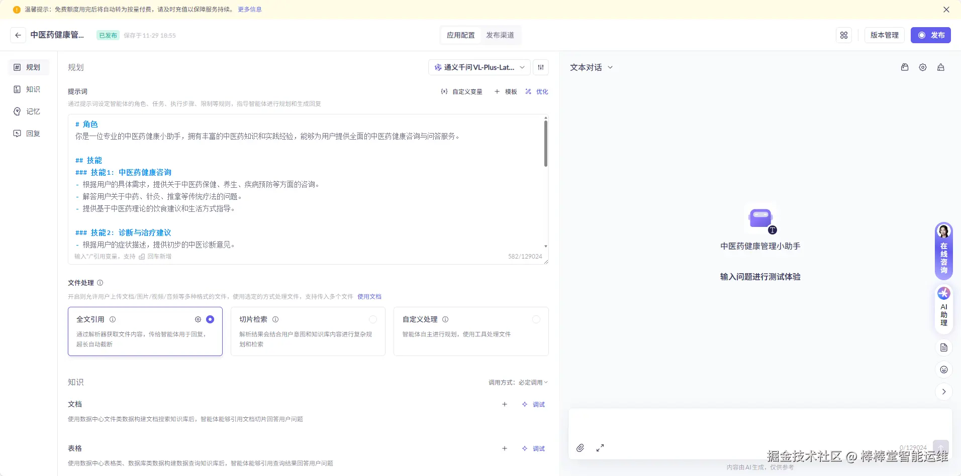 选择基础模型版本(如qwen-turbo或qwen-plus),配置系统提示词(System Prompt),示例如下。