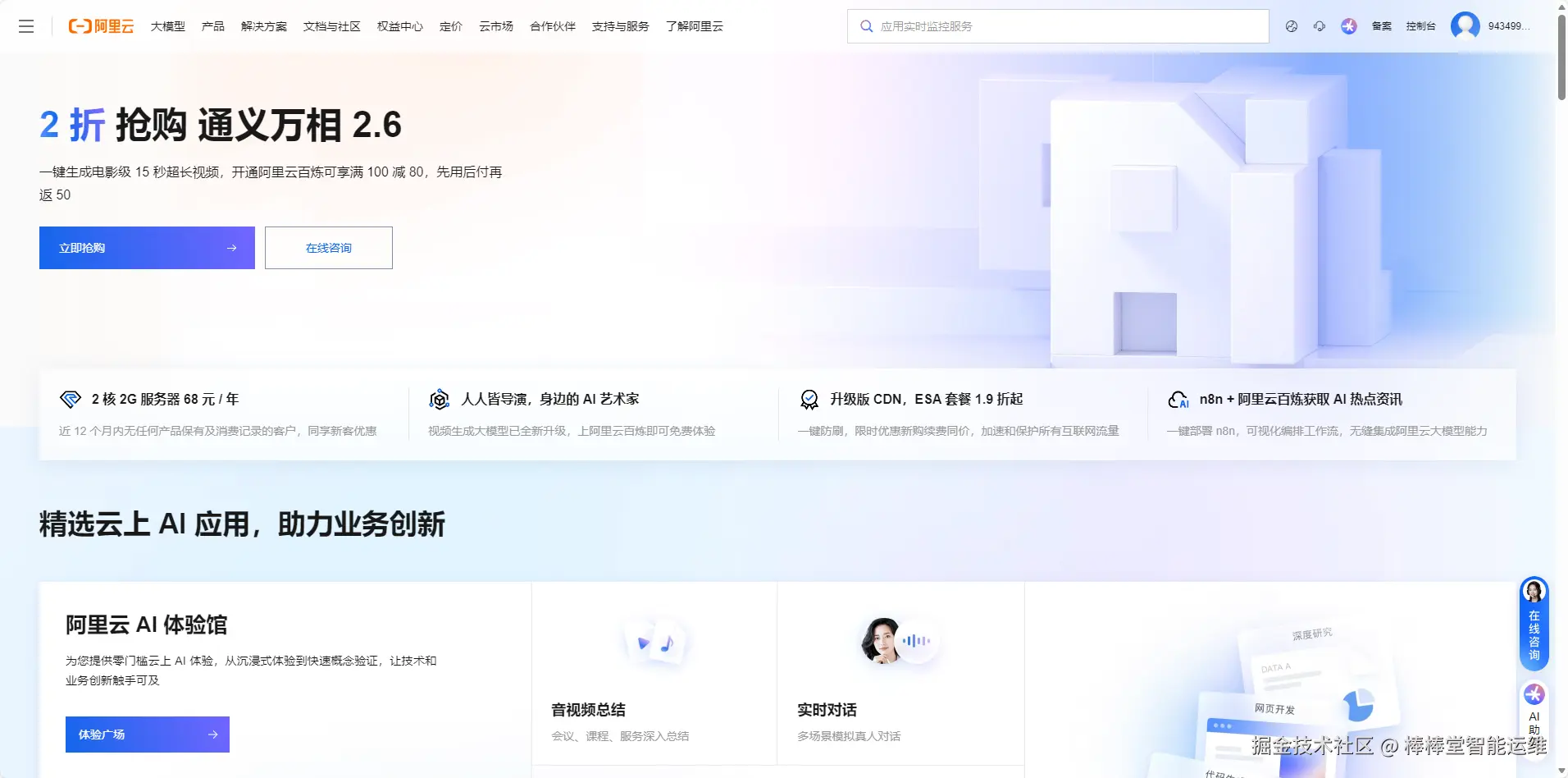 打开阿里云官网(www.aliyun.com/),点击右上角"免费注册"按钮,按照提示完成手机号/邮箱验证,完成个人实名认证(需要身份证信息)。