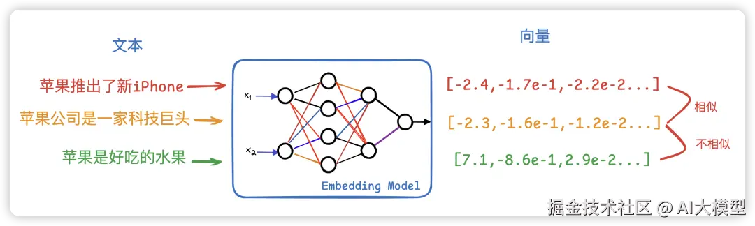 embedding 向量化,在大模型中,我们一个词表达意思可能会有区别,比如苹果既可以代表水果,也可以代表手机,所以某个词是什么意思取决于这个词所在的语境是什么。