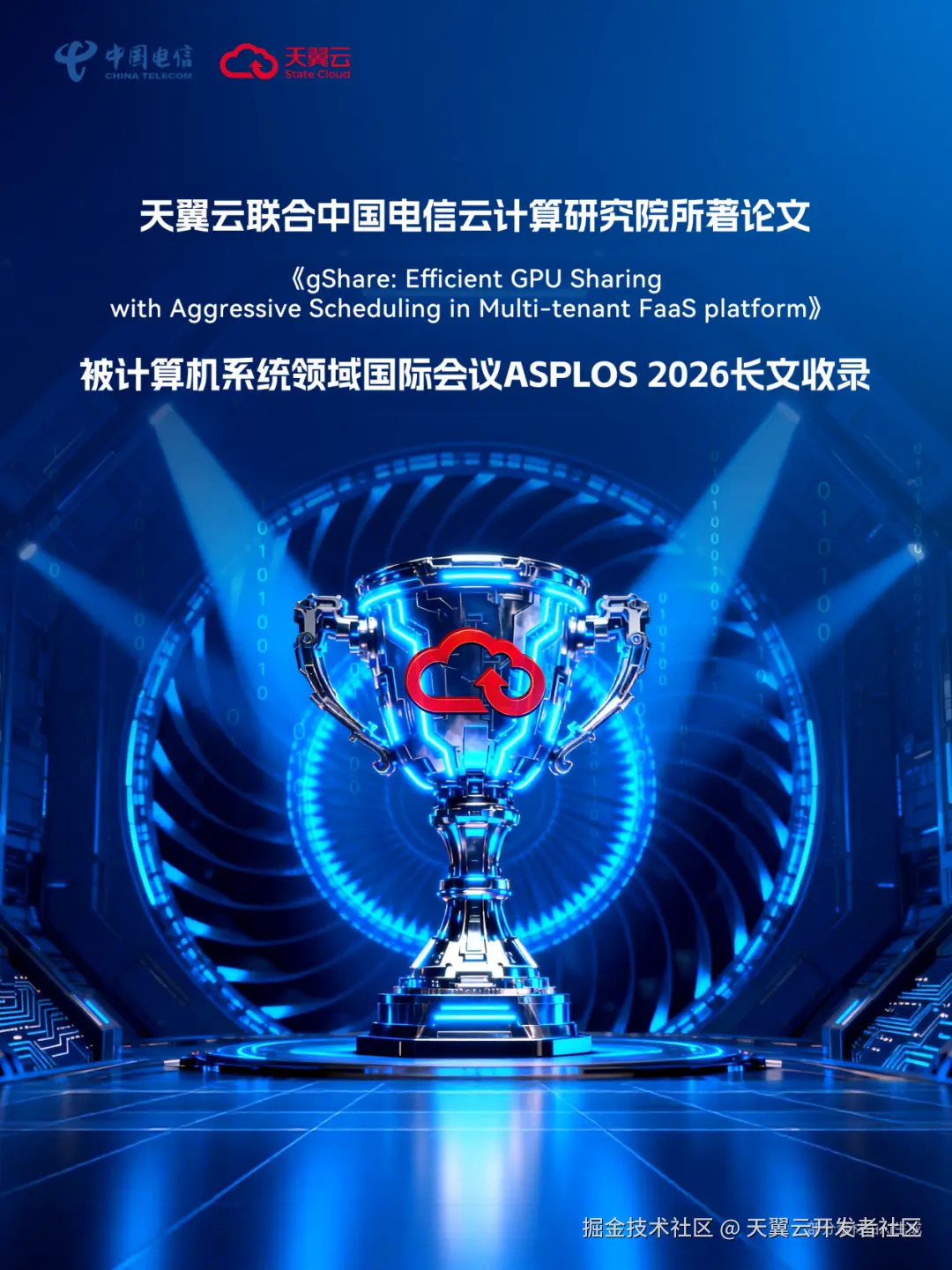 近日,由天翼云与中国电信云计算研究院联合完成的论文《gShare: Efficient GPU Sharing with Aggressive Scheduling in Multi-tenant FaaS platform》,获计算机系统领域国际顶级会议ASPLOS 2026长文收录。该研究面向AI智能应用场景,提出了一套针对GPU FaaS云函数的高效资源共享与调度机制,标志着天翼云在Serverless GPU的细粒度算力供给与多租户资源优化领域实现重要突破。