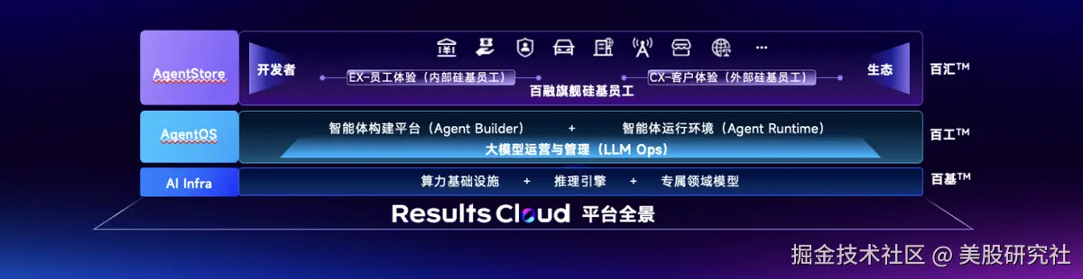 “结果云”(Results Cloud)平台重磅发布。作为RaaS战略的核心载体,“结果云”平台的设计哲学是让企业像雇佣和管理人类员工一样,规模化地部署和管理“硅基员工”。该平台共分为三层架构:
