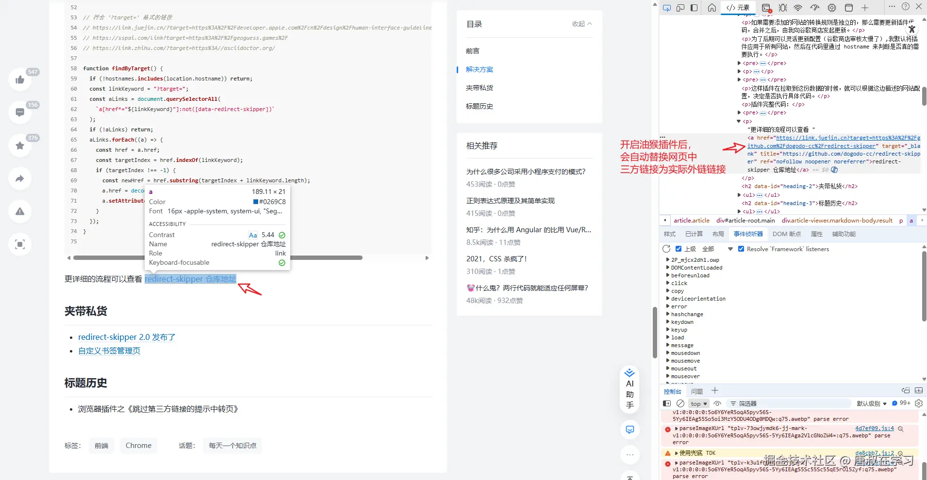 脱裤子放屁 - 你们讨厌这样的页面吗?一个浏览器插件,用于跳过掘金,知乎,少数派等网站的外链中转站页面。让你的互联网浏览 - 掘金