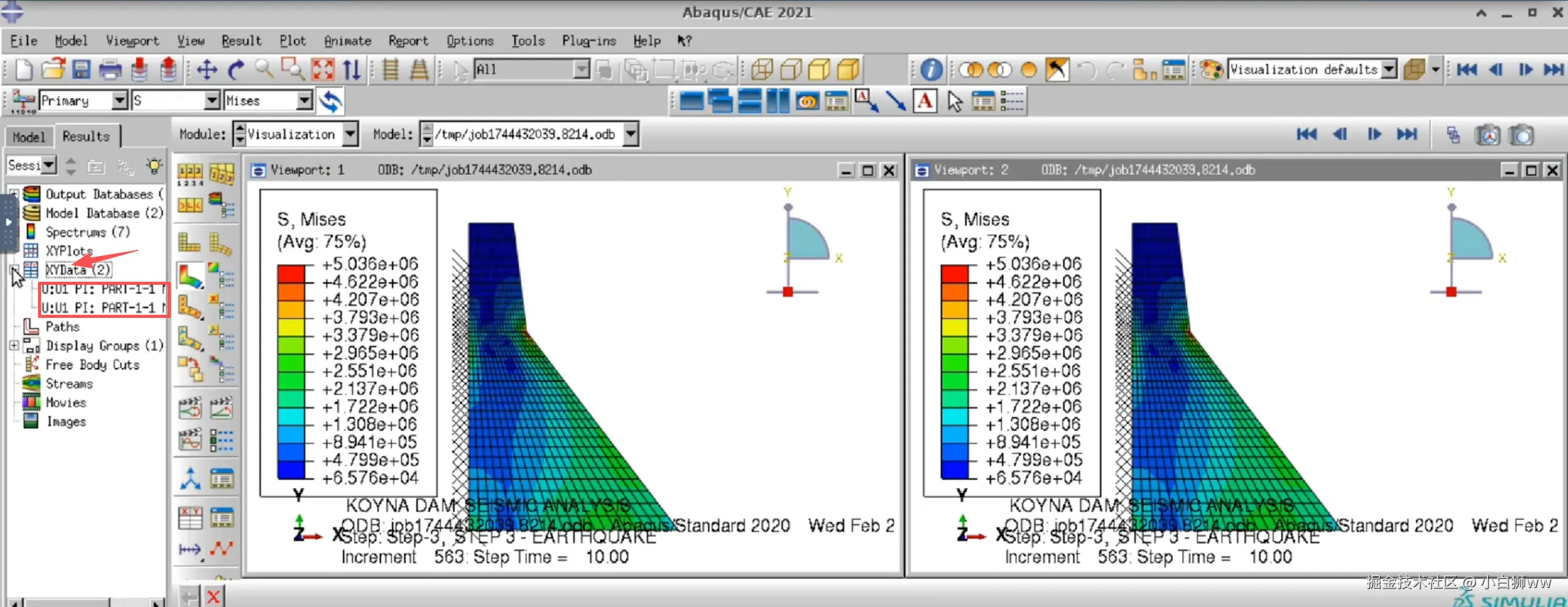 该教程为 Abaqus 官方教程:混凝土重力坝的抗震分析。本例说明了混凝土损伤塑性材料模型在评估任意载荷作用下混凝土结构稳定性和损伤的典型应用。