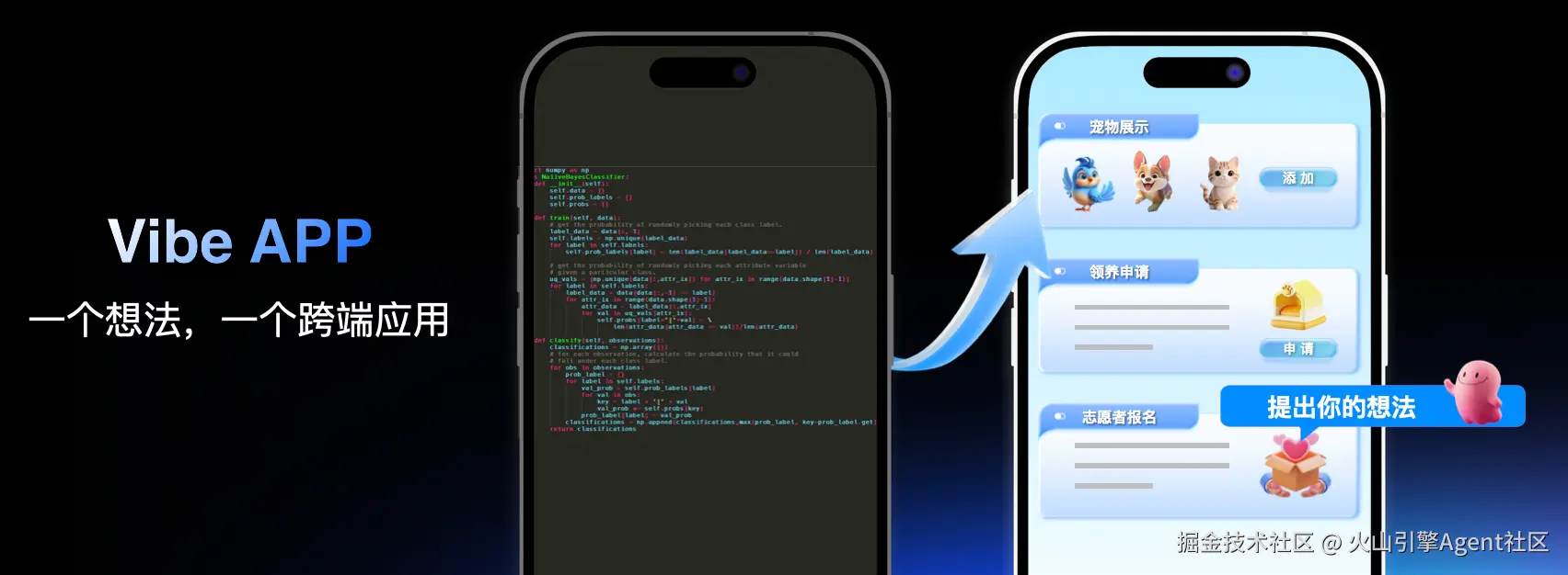 接下来介绍的功能是 Vibe App,正如屏幕上的 slogan,一个想法,一个跨端应用。
