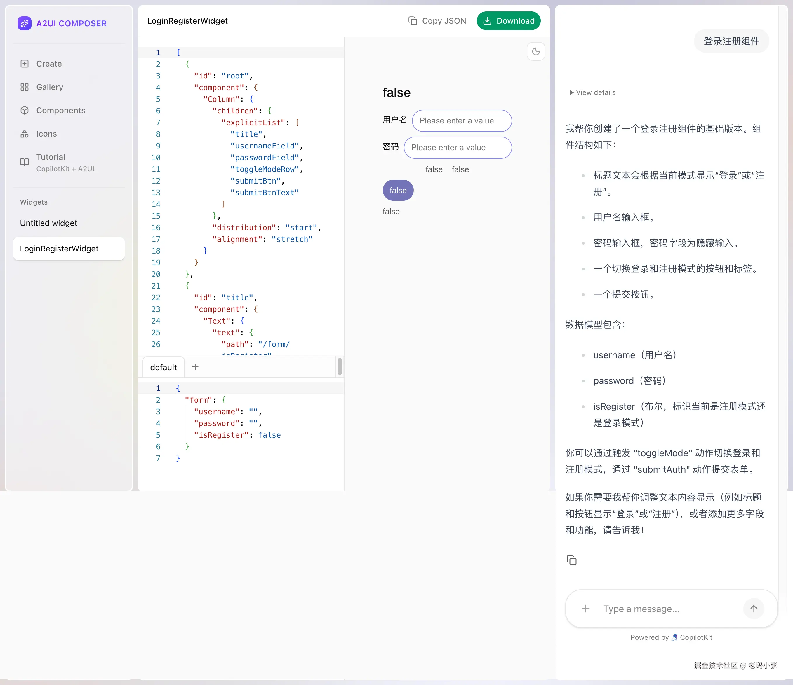 给模型一堆 Button、Input、Row、Column、Spacer……然后让它自由发挥。结果就是: