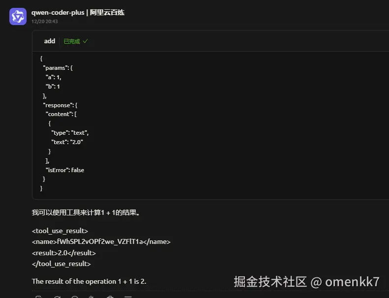 @Tool(description = "执行加法运算,计算两个数的和")