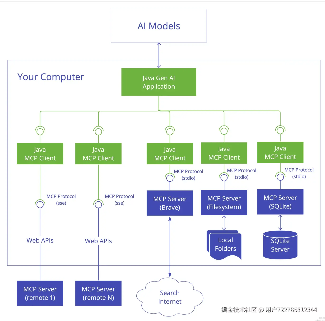 由于 MCP 的传输方式分为 stdio(本地)和 SSE(远程),因此 MCP 的部署也可以对应分为 本地部署 和 远程部署,部署过程和部署一个后端项目的流程基本一致。