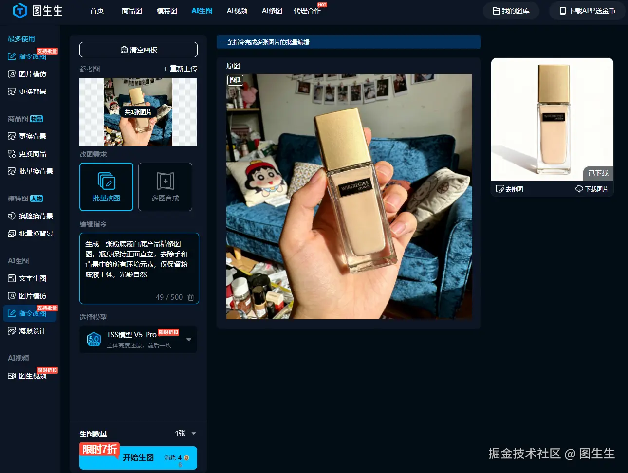直到用了图生生指令改图!上传原图,一句话指令,一分钟出边缘干净、光影均匀的专业白底精修图,小白也能秒变美工,不用等、不费钱!