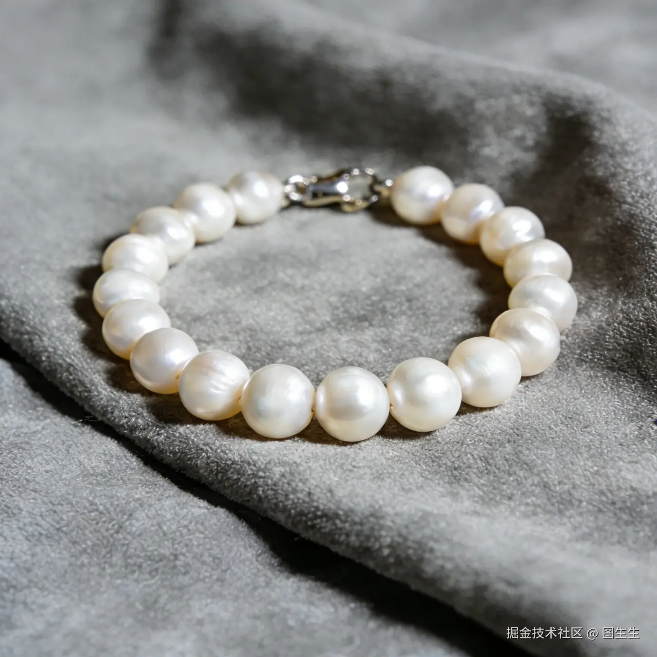 ◇原图痛点:在灰色布料上随意拍摄,体现不出珍珠的圆润光泽,显得廉价