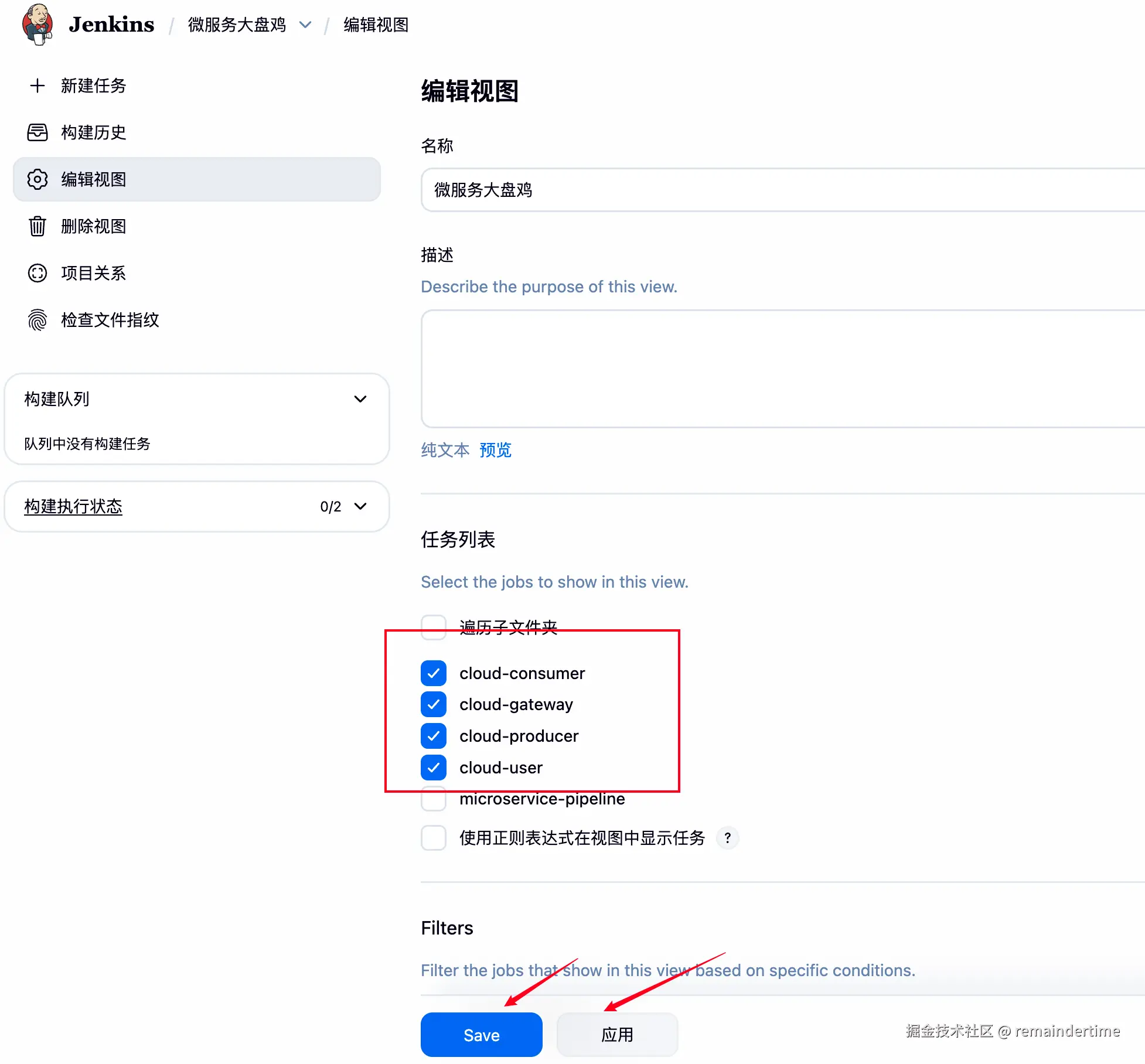 注:配置中的 java 堆大小以及 占用核数、运行内存大小 需要根据自身服务器配置以及需要并行运行的服务个数决定,配置太小会导致系统为了自保,要么卡死,要么会把 Jenkins 甚至把你的 Nacos 等服务给杀掉。