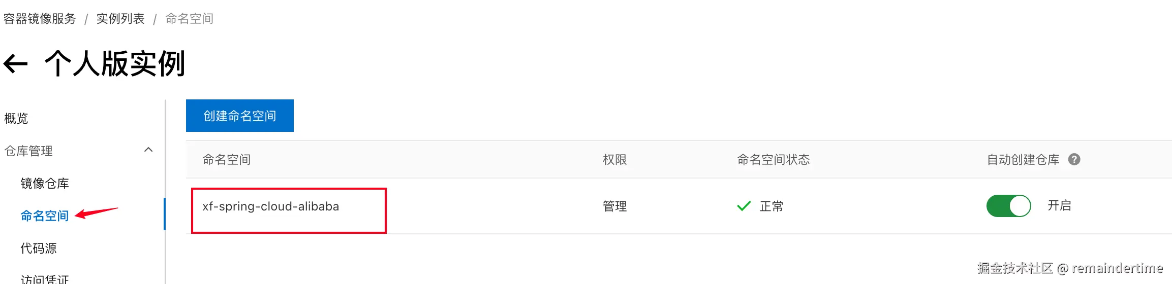 进入阿里 ACR 镜像仓库查看,以及自动创建对应服务的镜像仓库